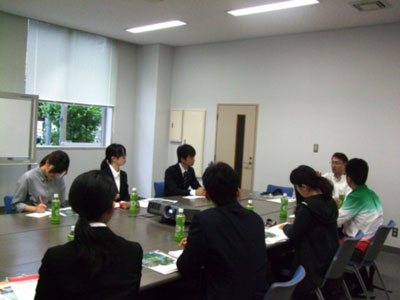 第1回目はNECエナジーデバイス株式会社 採用担当者の藤野様をお招きし、参加者7名に業界全体のお話から、採用担当者の学生を見るポイント等まで幅広くお話していただきました。